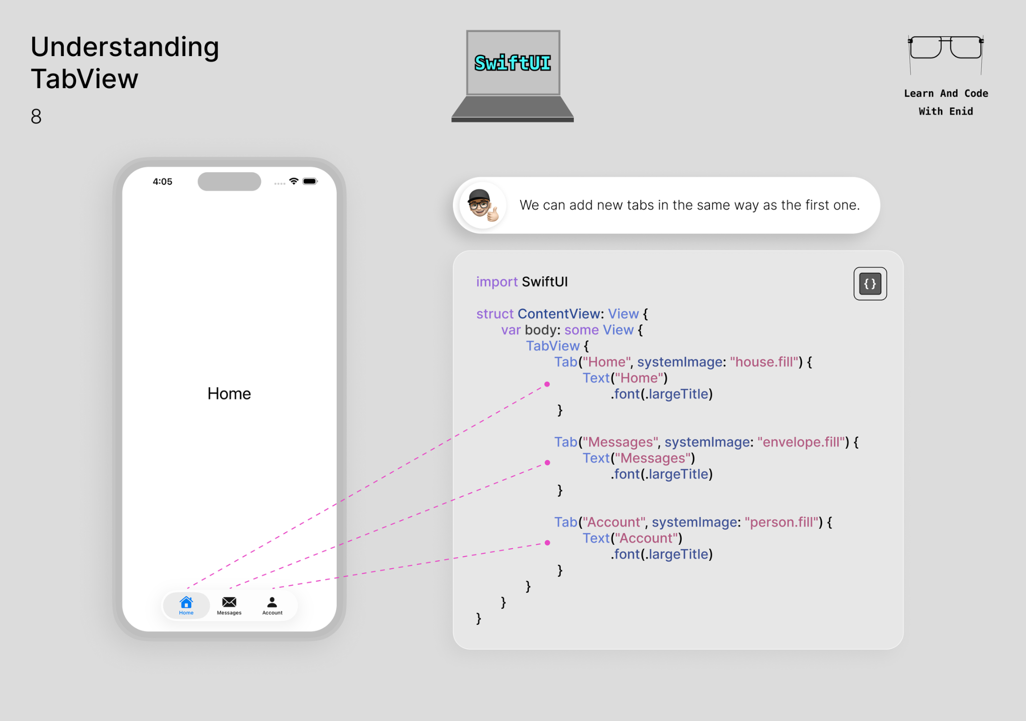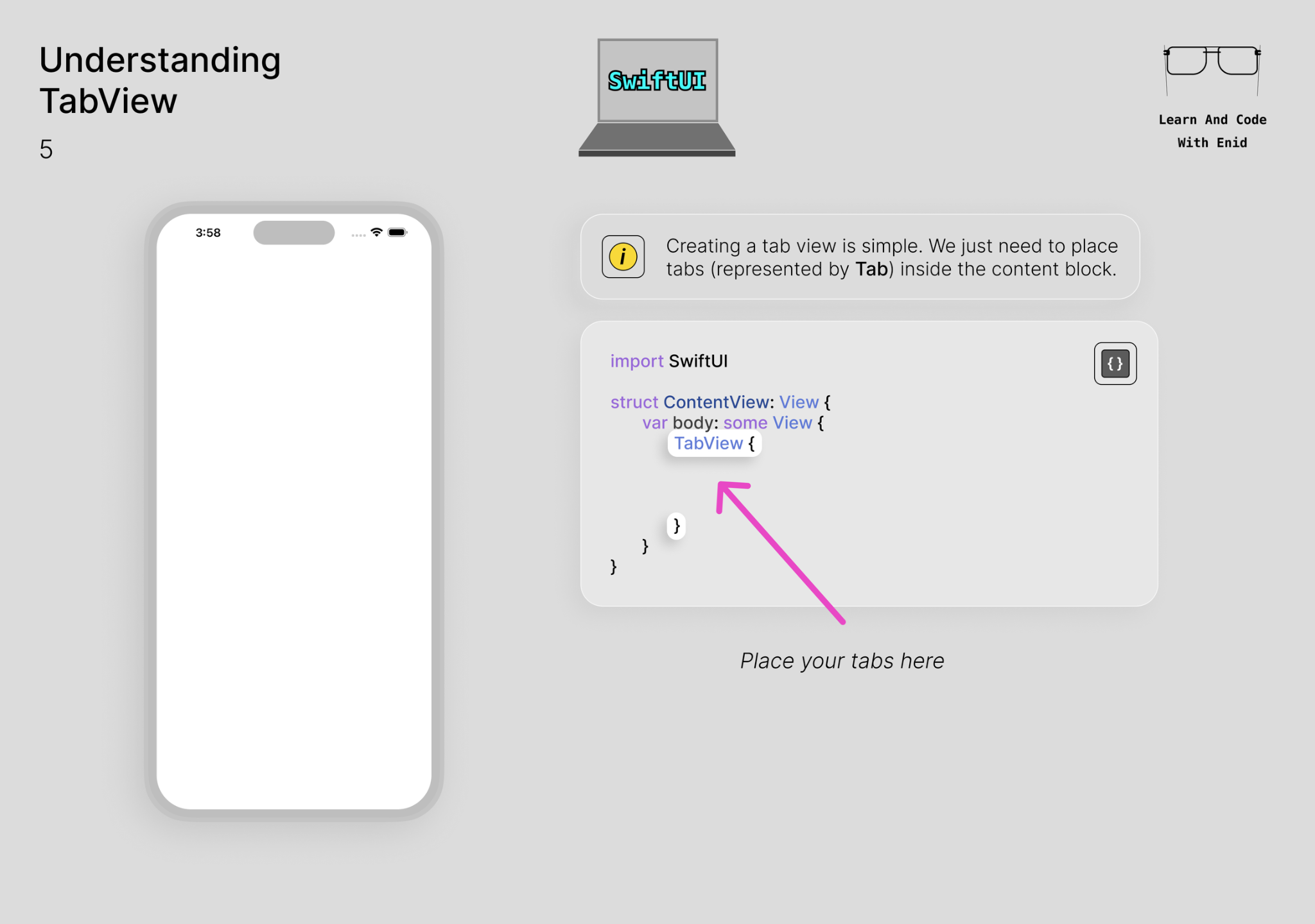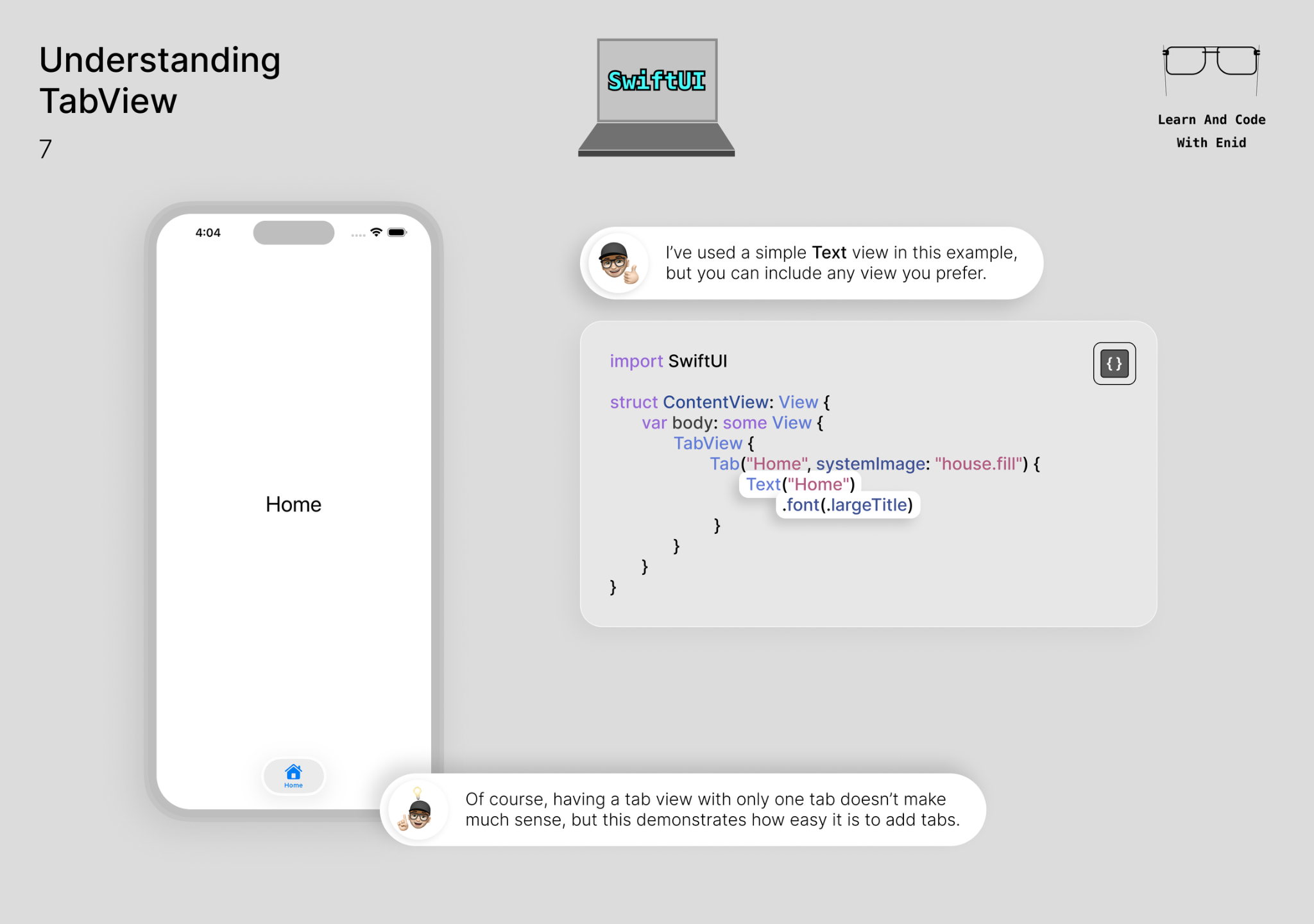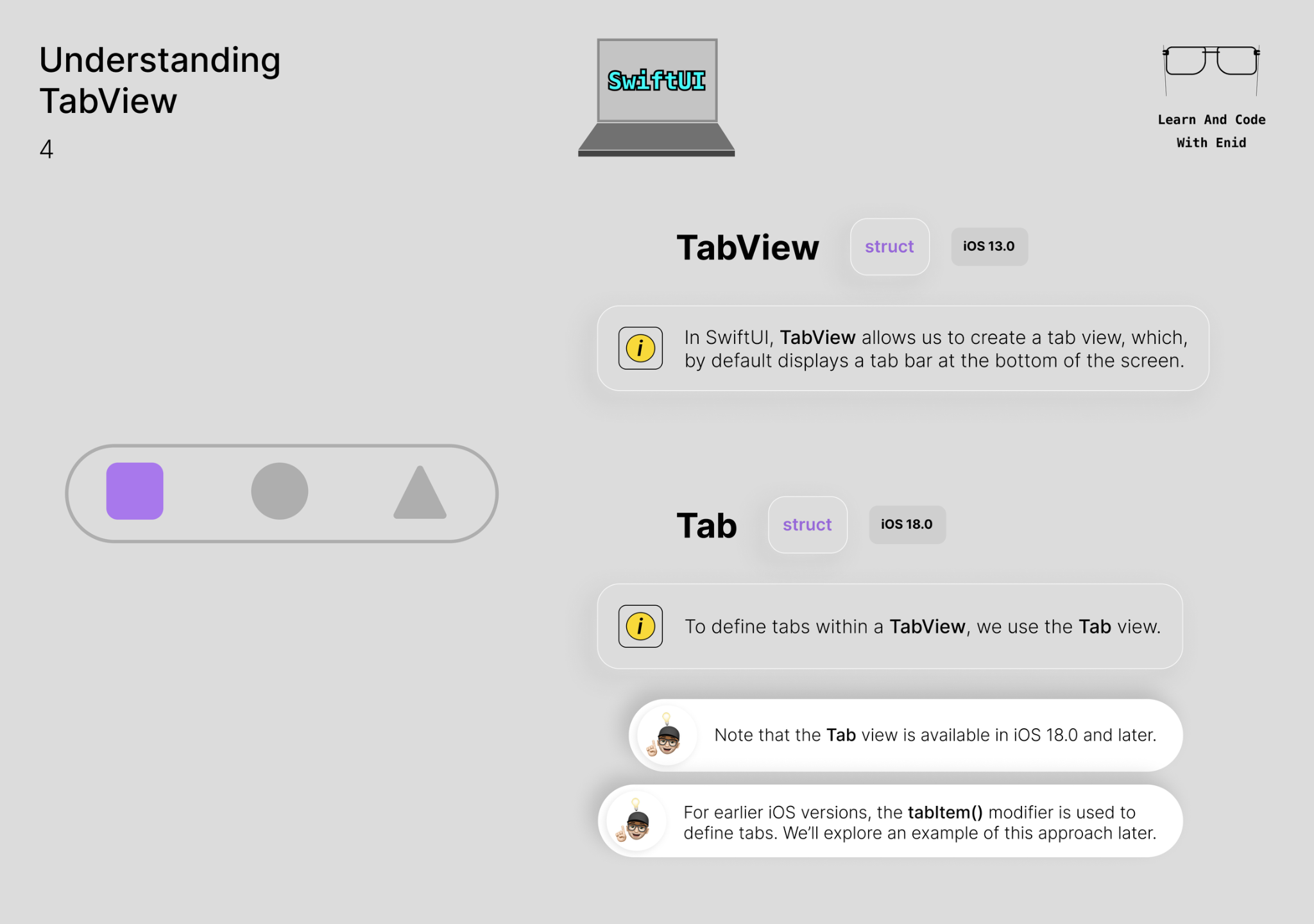 From the āUnderstanding TabViewā chapter ā just one example of the visual approach youāll get throughout the course. š